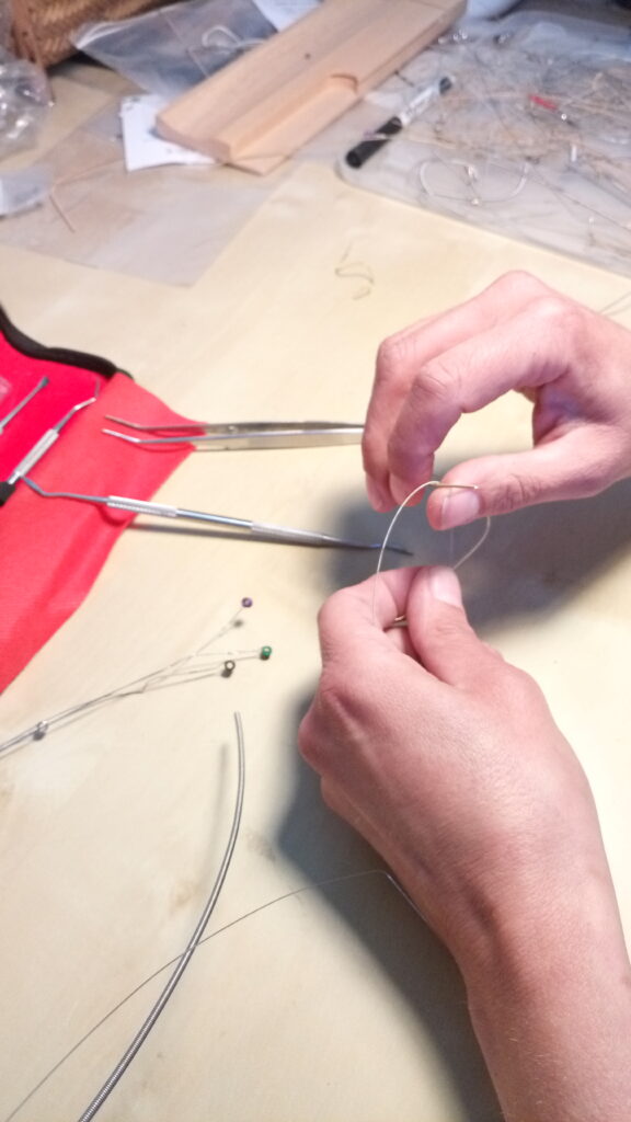 Je donne une seconde vie aux cordes de guitare et de basse en les transformant en bijoux. Passionnée de musique, fabriquer des bijoux à partir des cordes de guitare me permet d’avoir un autre lien avec la musique et les artistes que j’aime. Je collecte auprès des écoles de musique, des luthiers et des musiciens les cordes qui autrement seraient jetées.
