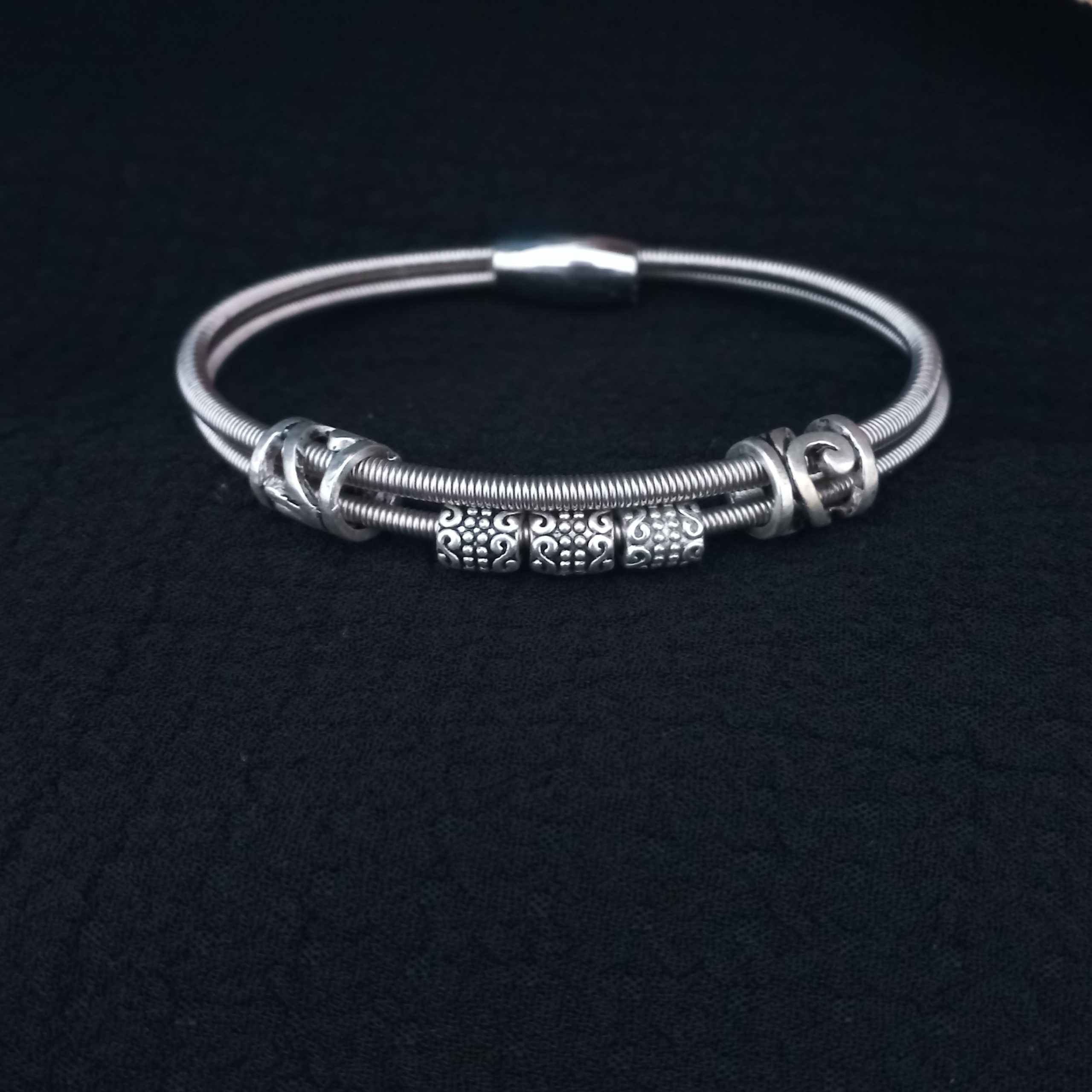 Bracelet cordes de basse recyclées Perles métal